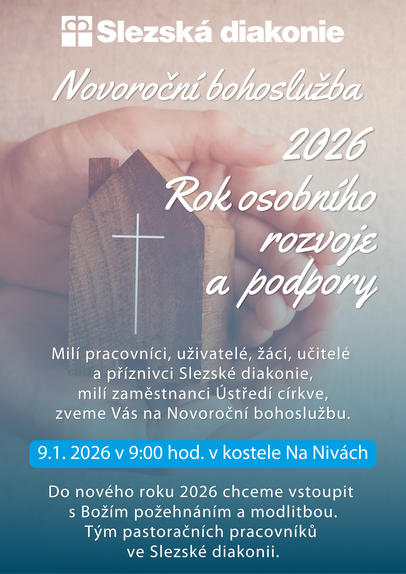 Milí pracovníci, uživatelé, žáci, učitelé a příznivci Slezské diakonie, milí zaměstnanci Ústředí církve, zveme Vás na Novoroční bohoslužbu.