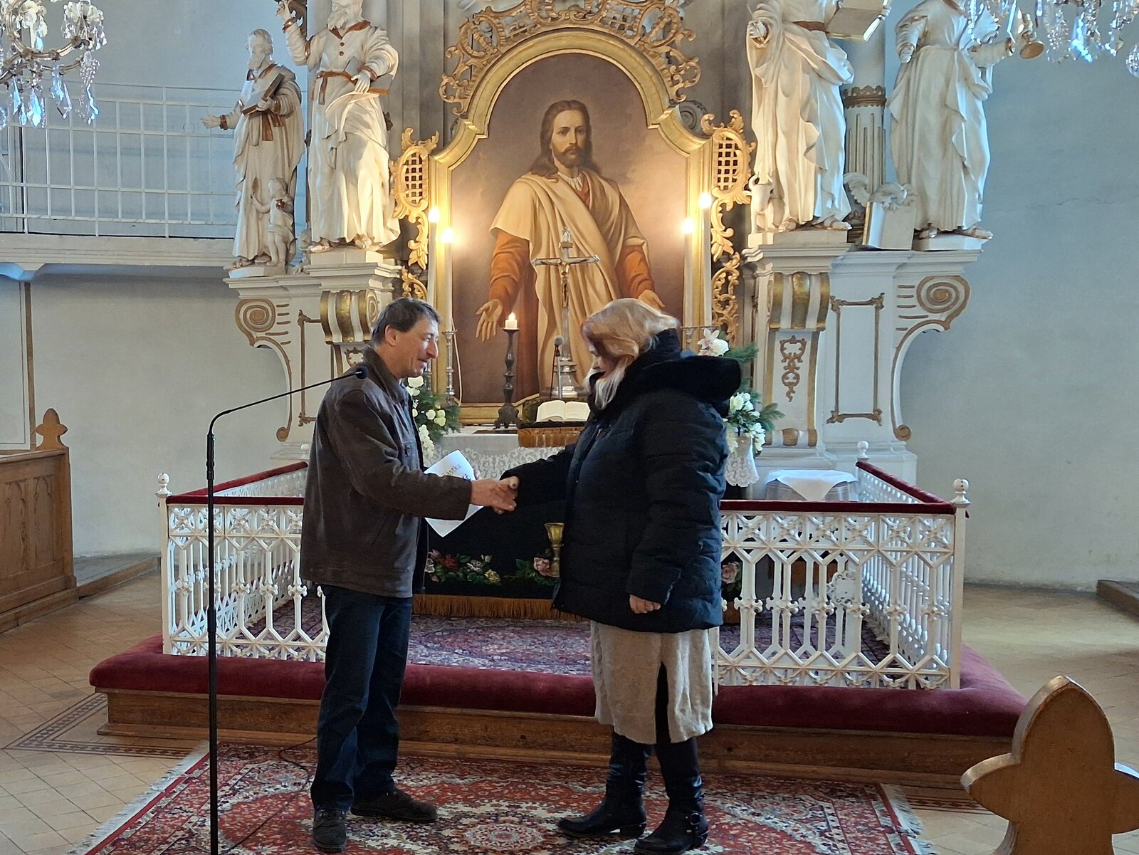 Bohoslužbu vedla koordinátorka duchovní služby ve Slezské diakonii Miriam Szőkeová. Hostem za sociální služby byla paní Michaela Ohřálová, vedoucí PORADNY PRO RODINY Havířov, INTERVENČNÍHO CENTRA Havířov a OBČANSKÉ PORADNY Havířov, která také převzala krásný finanční dar z charitativního koncertu Gymnázia Komenského, Havířov-Město, který se v tomto kostele konal v adventu loňského roku.